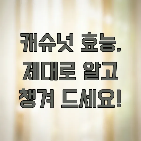 어떠세요? 캐슈넛, 정말 매력적인 식품이죠? 맛있는 간식으로 즐기면서 우리 몸의 건강까지 챙길 수 있다니, 앞으로 캐슈넛을 더욱 가까이하게 될 것 같아요! 오늘 알려드린 캐슈넛 효능들, 꼭 기억하시고 건강한 식습관에 함께 활용해 보시길 바라요.