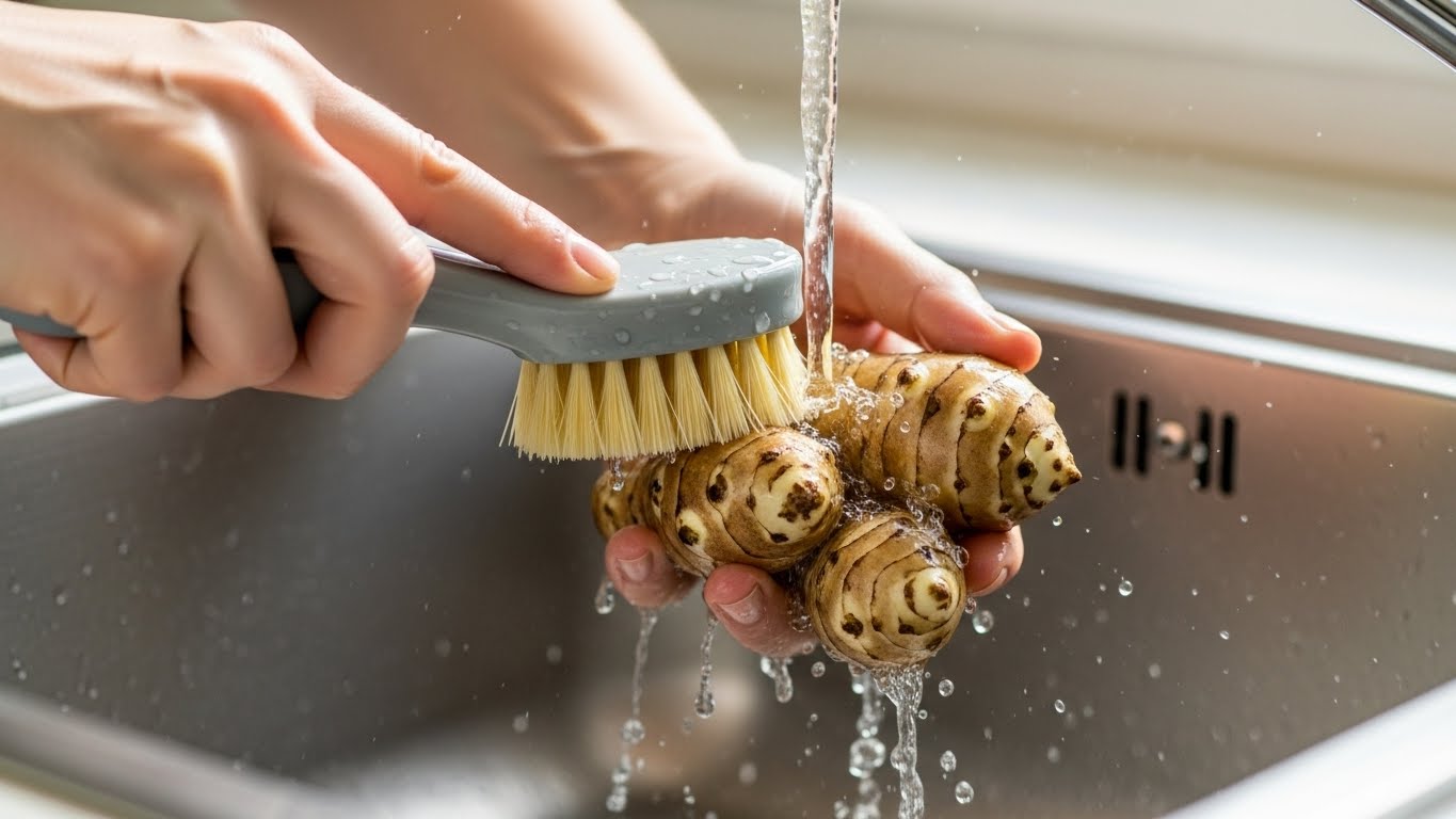 돼지감자의 표면은 울퉁불퉁해서 흙이 많이 묻어있으므로 흐르는 물에 꼼꼼히 세척해야 합니다.