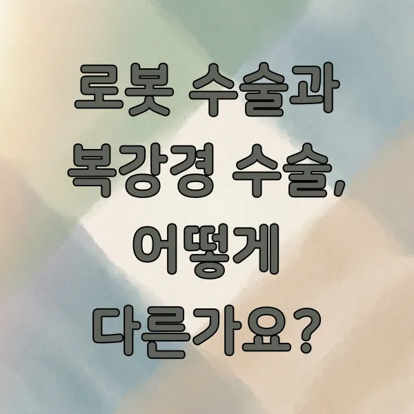 로봇 수술 은 의사가 콘솔에 앉아 로봇 팔을 조종하며 수술하는 방식인데요, 의사의 손떨림을 보정해주고 3D 고화질 영상을 제공해서 더 정교한 수술이 가능하도록 돕는다고 해요. 복강경 수술 은 카메라와 수술 기구를 작은 구멍으로 삽입하여 화면을 보면서 진행하는 방식이고요. 어떤 방식이든 경험 많은 의료진에게 받는 것이 중요합니다.