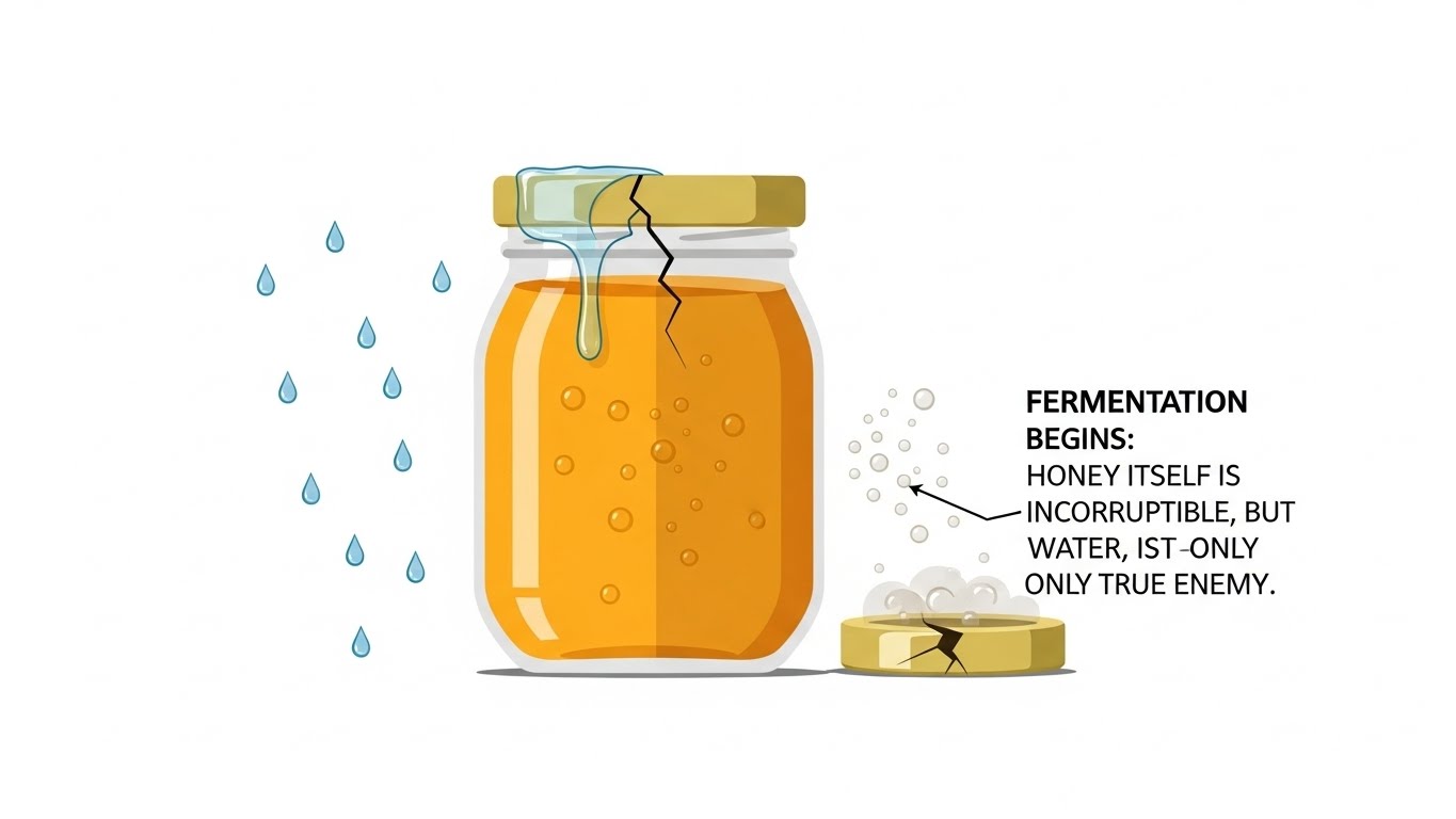 꿀이 상하는 가장 큰 원인은 물이에요. 젖은 숟가락으로 떠서 먹거나 물이 들어가면 효모가 번식해서 발효되거든요. 저도 처음 모르고 물 묻은 숟가락으로 떴다가 꿀이 상해서 버린 적이 있어요.