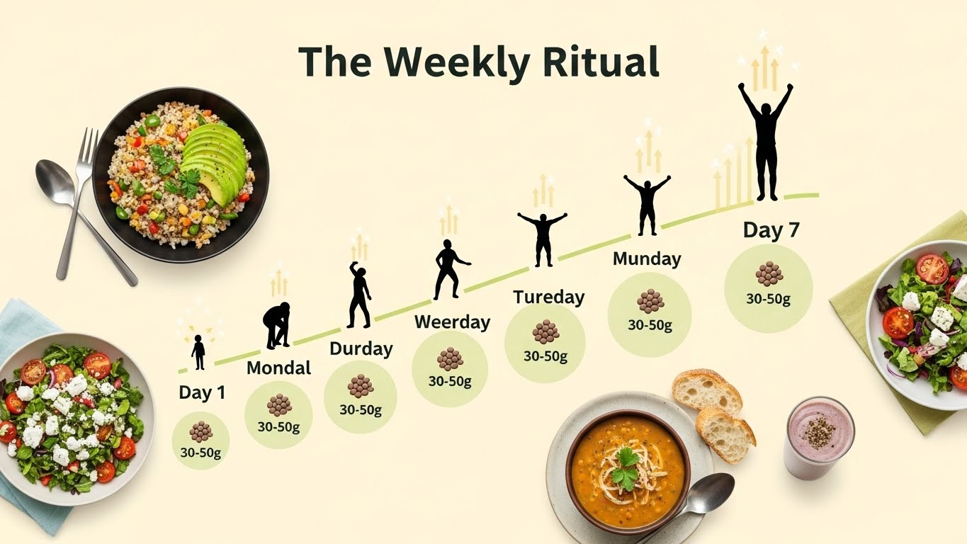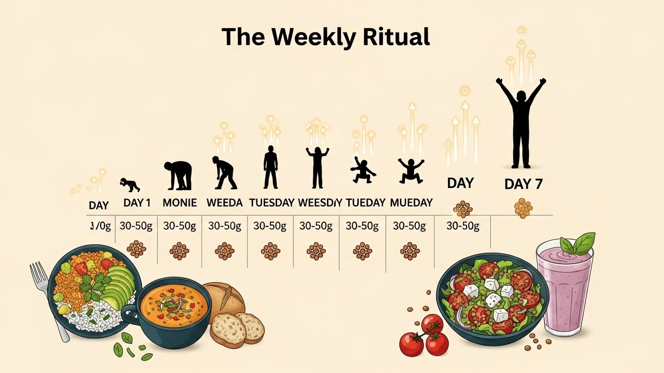렌틸콩의 하루 권장량은 일반적으로 30~50g(삶은 상태로 약 100~150g) 정도예요. 처음 시작할 때는 이보다 더 적은 양부터 시작해서 서서히 늘려가는 게 좋아요.