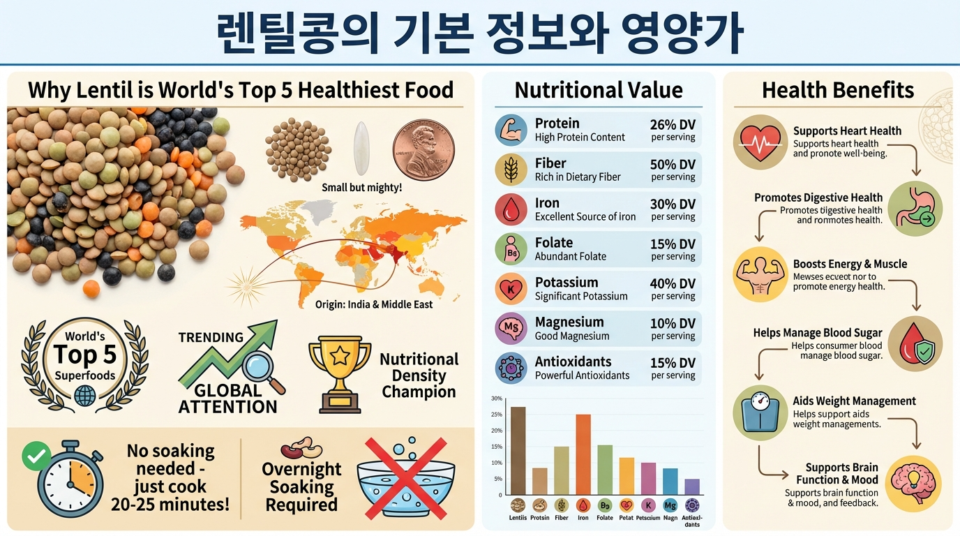 렌틸콩은 정말 작은 콩이지만, 당신의 건강을 완전히 바꿀 수 있는 힘을 가지고 있어요. 고단백, 고식이섬유, 저지방이라는 완벽한 조합으로 혈당 조절, 심장 건강, 면역력 강화, 다이어트까지 모두 챙길 수 있어요.